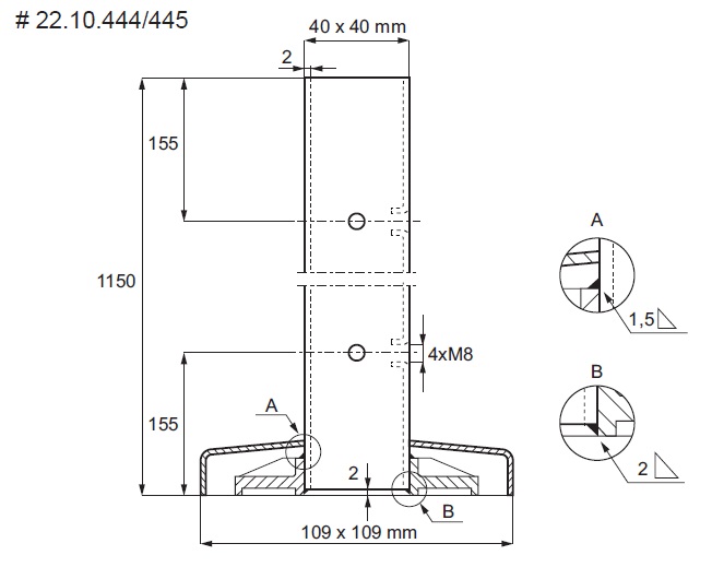 SQ 90DG Baluster SS316 Brush,40x40x2x1150mm,4 Holes 2 Sides