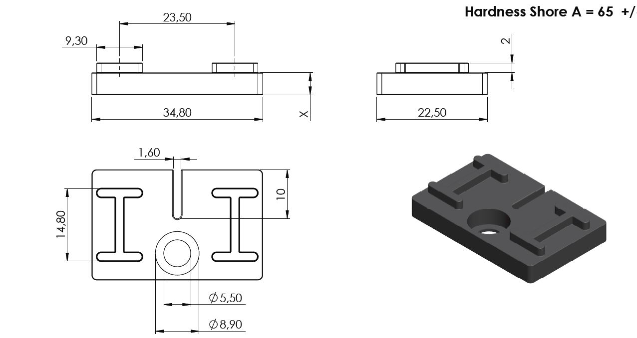 Cushion "H" F/ZA Clamp "Square BT", Glass 10mm (3,80mm), Black EPDM