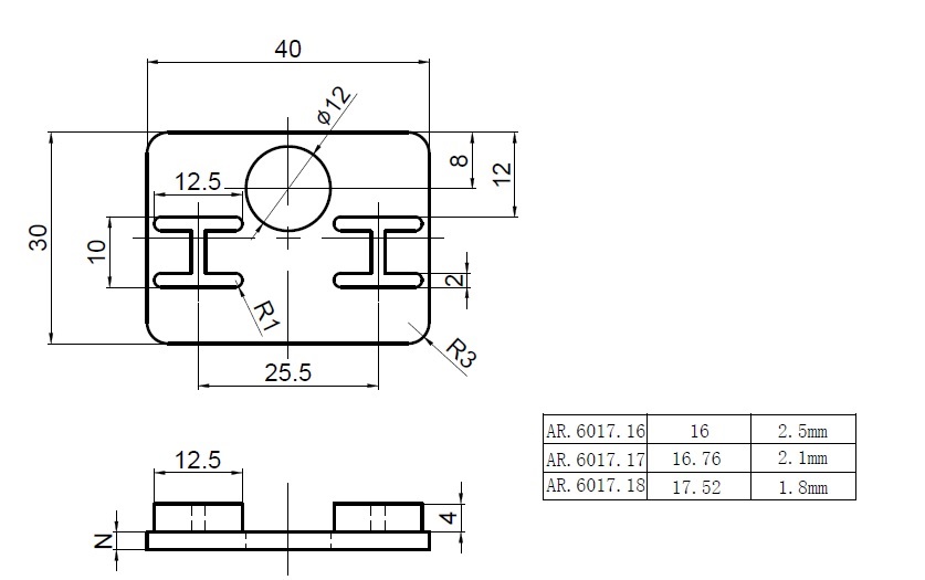 Cushion "J" F/SS Clamp "Square BT", Glass 16,76mm (2,10mm), Black EPDM, For 22.10.726