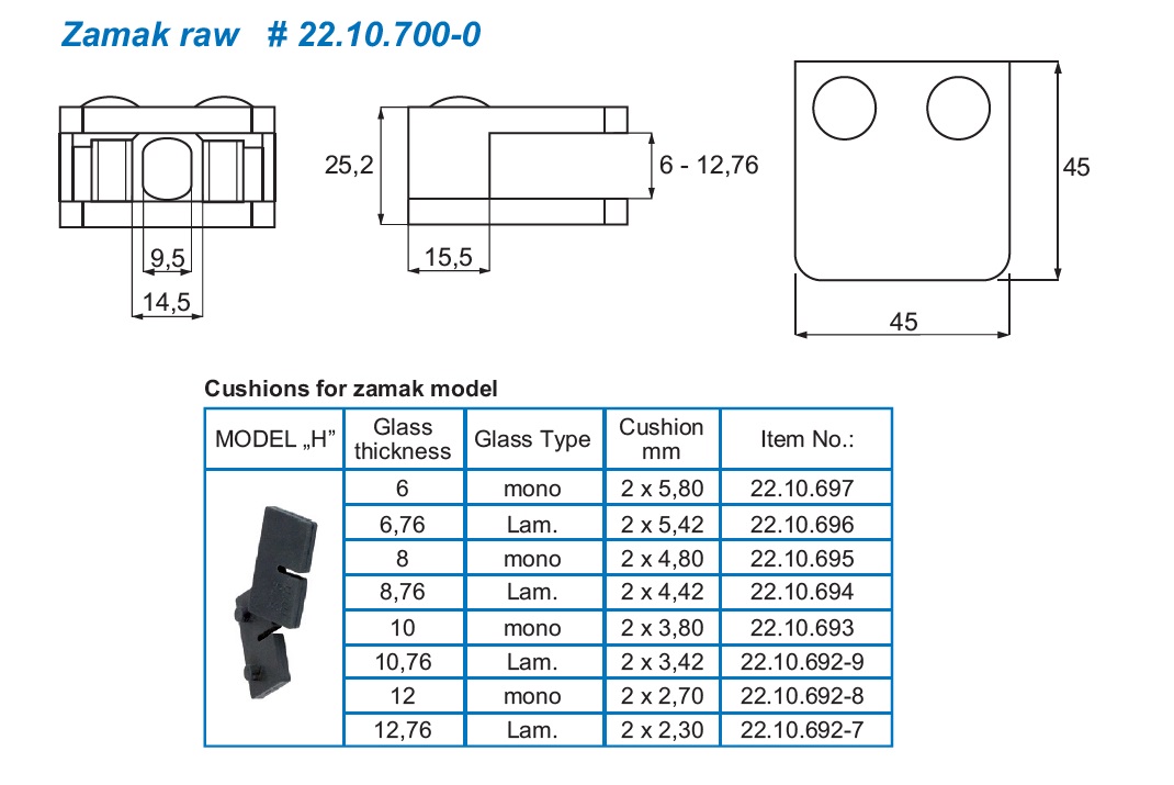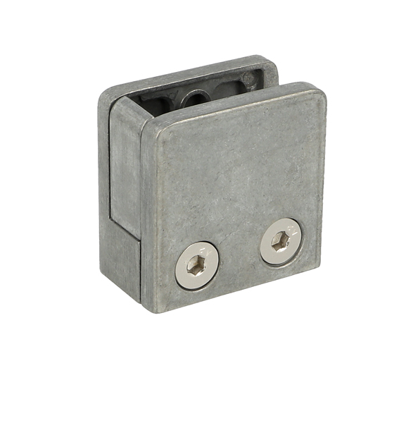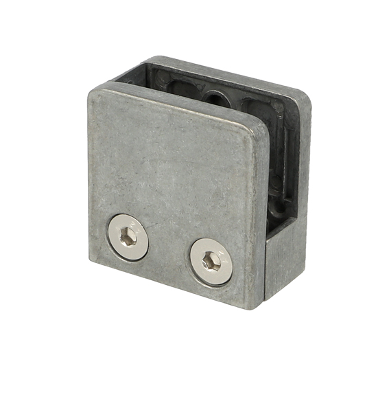 Glass Clamp "Square" 45x45x23mm, Zamak-Raw, Flat, 6-12,76mm. Glass Thickness, Incl. Safety Pin BUT No Cushions, W/Bottom Plate(Cushion Model H)