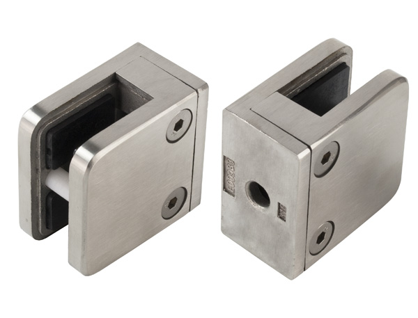 Glass Clamp "Square" 53x54x31,5mm, SS316-Brushed, Flat, 12,76mm, Glass Thickness, W/Safety Pin & Cushions