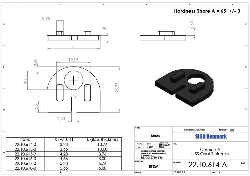 Cushion "A" F/SS Clamp "Oval-S", Glass 6,76mm (5,28mm),Black EPDM
