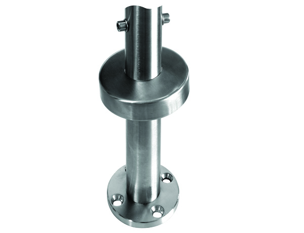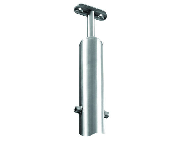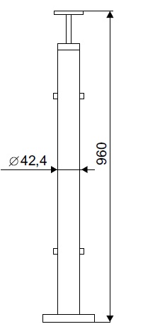 Baluster Post SS304, ø42,4x1,7mm, L 879mm, 180DG, W/Fixed Hand Rail, 4 Through Holes W/M8x14mm Screws F/Clamps,Incl. Base Cover Cap & 4 Floor Plugs & Screws,W/ø42,4mmt Handrail, All Brushed SS304, (Glass Clamps to Be Bought Seperately)
