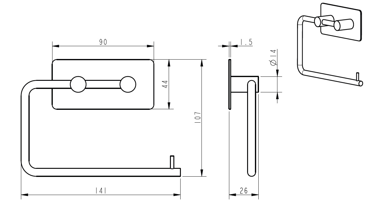 Toilet Roll Holder "Pisa", Adhesive, SS304, Polished, 141 x107mm
