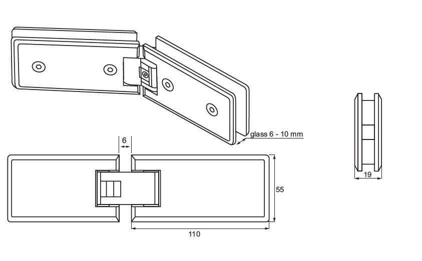 Shower Hinge "Linz", 135DG, SS-Look, Glass/Glass,6-10 Glass Thickness,W/15DG Angle Adjustment Function & 15DG Return Function, Brass Material, Rectangular Shape W/Chamfered Edges