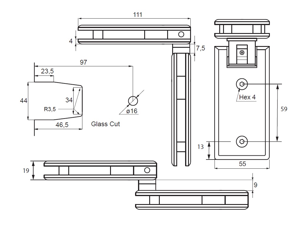 Shower Hinge "Linz", 90DG, Black, Glass/Glass, 6-10mm Glass Thickness,W/Angle Adjustment Function & 25DG Return Function, Brass Material, Rectangular Shape W/Chamfered Edges