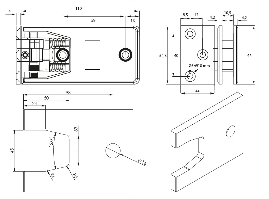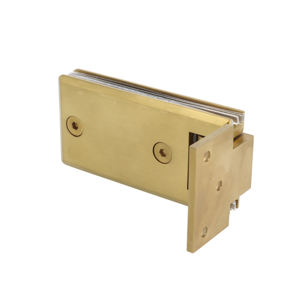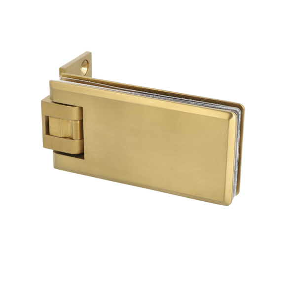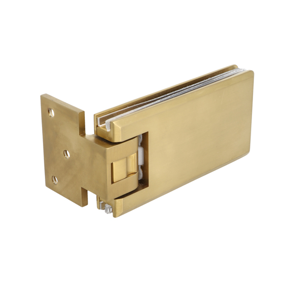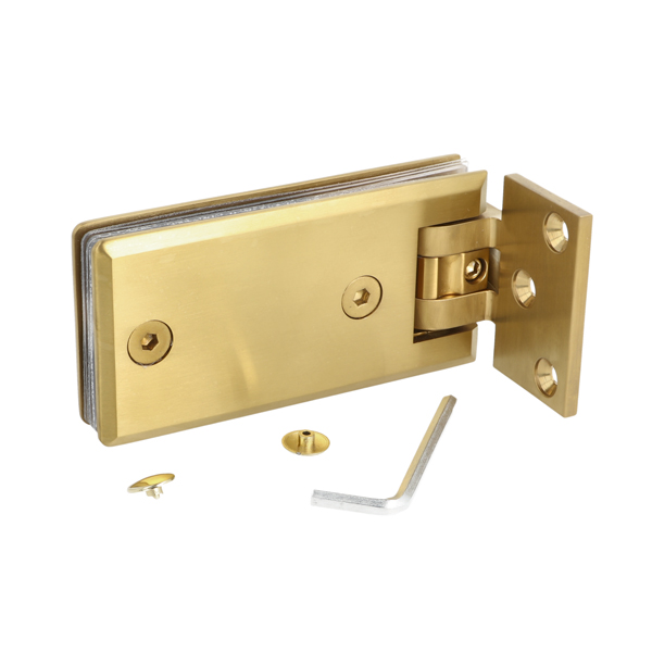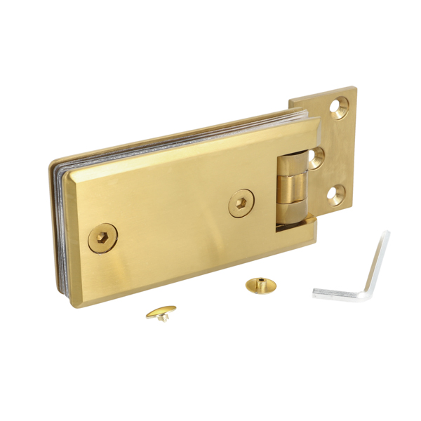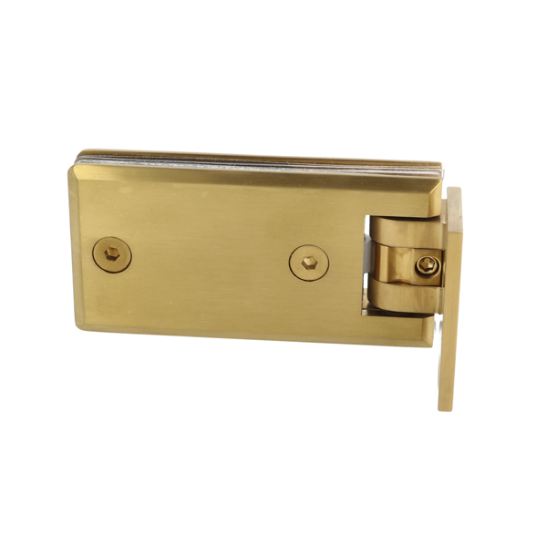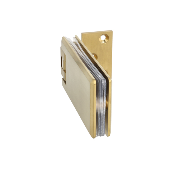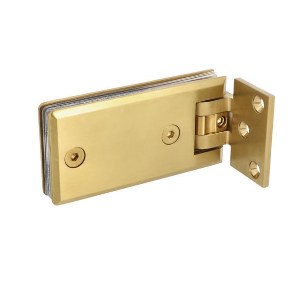 Shower Hinge "Linz", Wall/Glass, Brushed Brass,Offset Back 3 Holes, 6-10mm Glass Thickness, W/15 DG Angle Adjustment Function & 15DG Return Function, Brass Material, Rectangular Shape w/Chamferede Edges