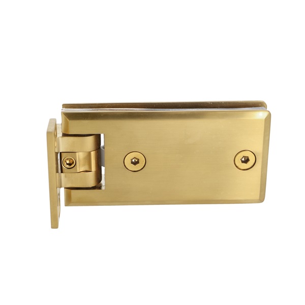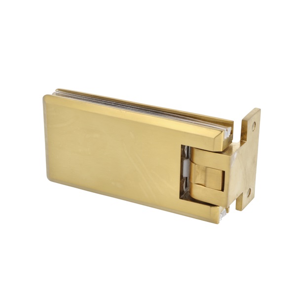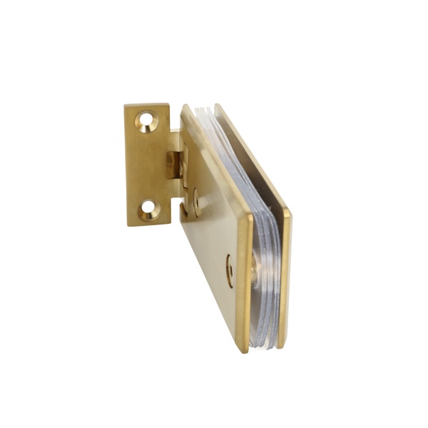 Shower Hinge "Linz", Wall/Glass,Brushed Brass, Offset Back Pl, 2 Holes, 6-10mm Glass Thickness, W/15DG Angle Adjustment Function & 15DG Return Function, Brass Material, Rectan- gular Shape w/Chamferede Edges