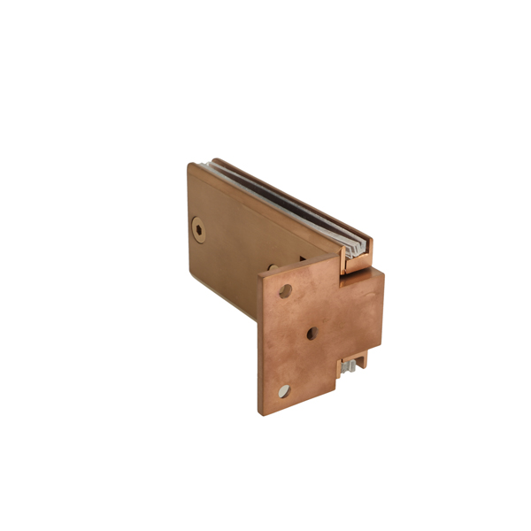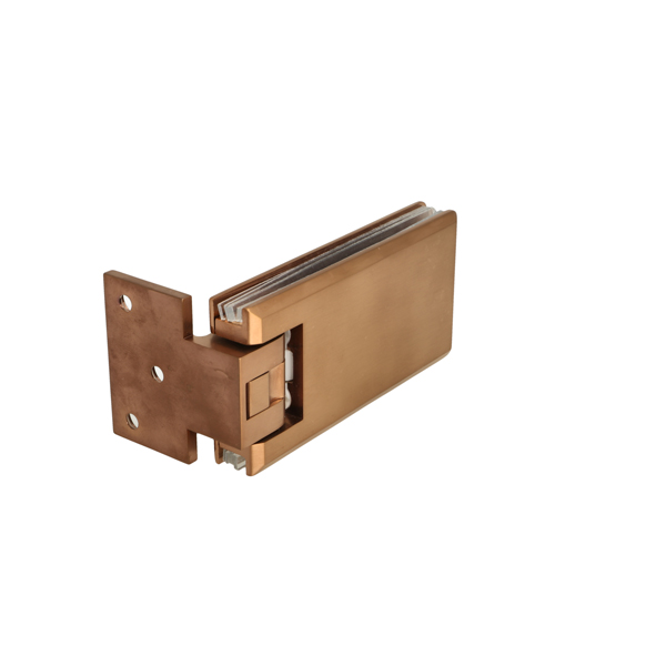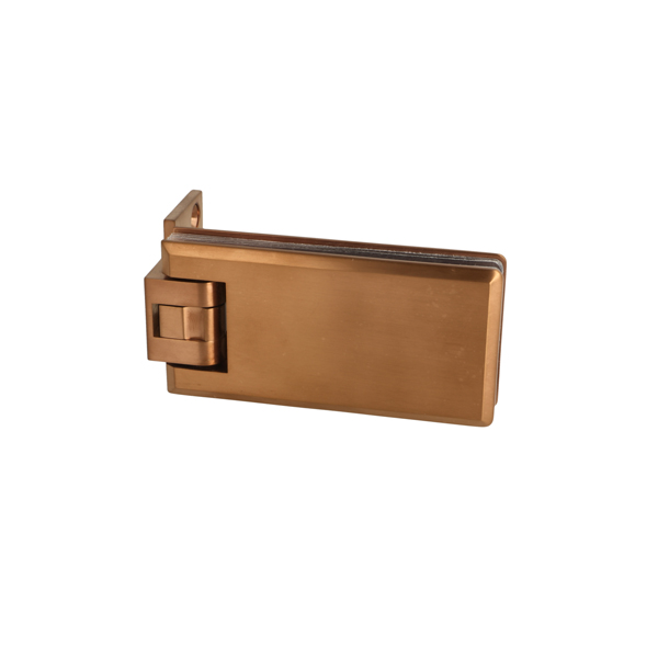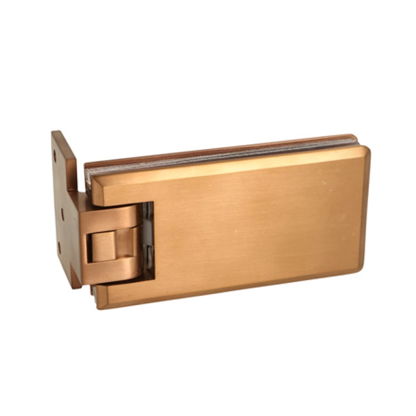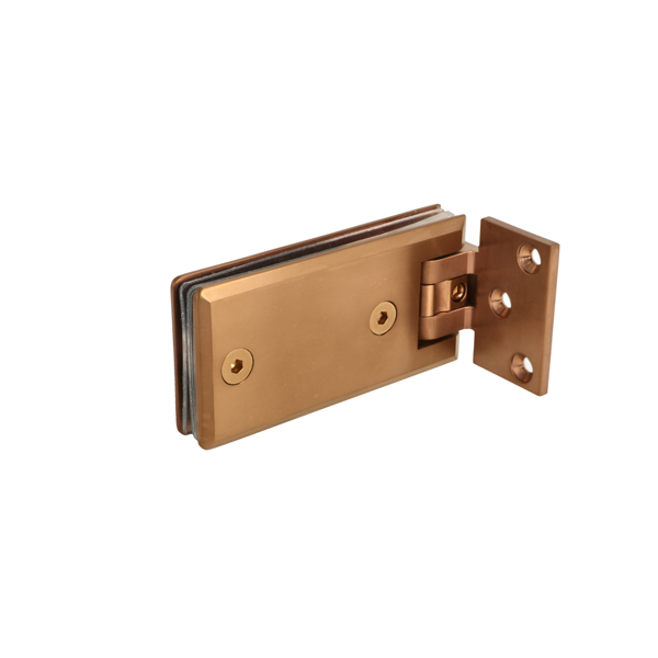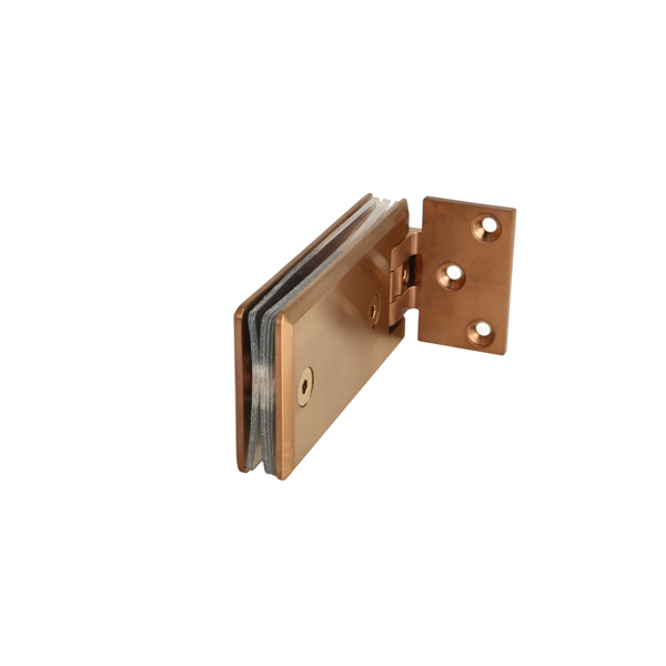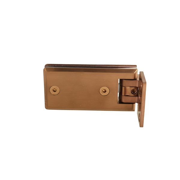 Shower Hinge "Linz", Wall/Glass, Brushed Copper,Offset Back Holes, 6-10mm Glass Thickness, W/15 DG Angle Adjustment Function & 15DG Return Function, Brass Material, Rectangular Shape w/Chamferede Edges