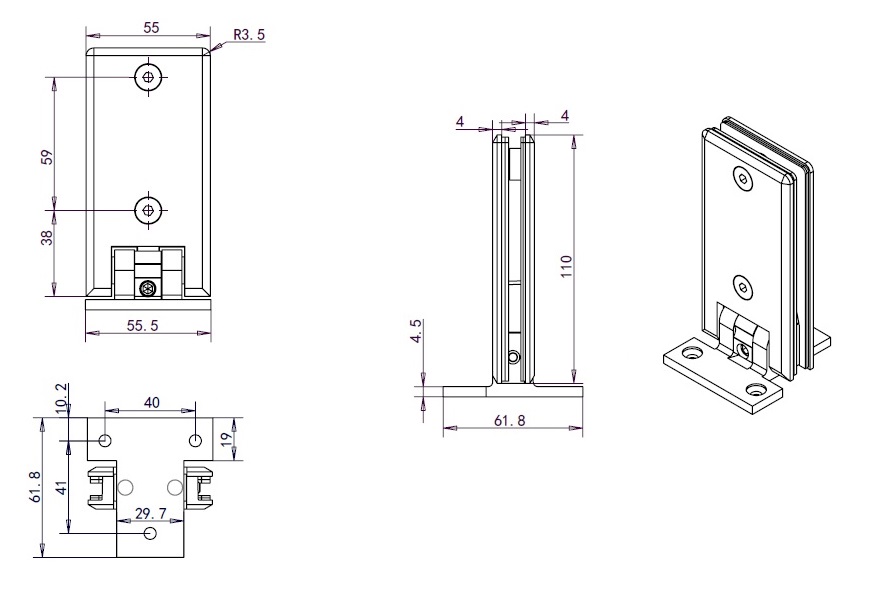 Shower Hinge "Linz", Wall/Glass, CPL, Centre Back Pl, 6-10mm Glass Thickness,W/15DG Angle Adjustment Function & 15DG Return Function, Brass Material, Rectangular Shape W/Chamfered Edges
