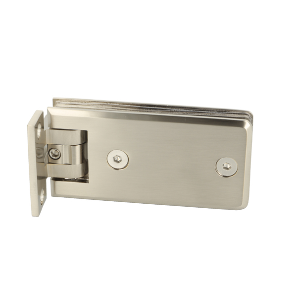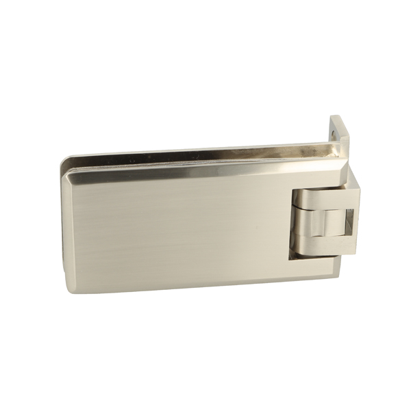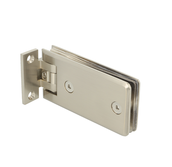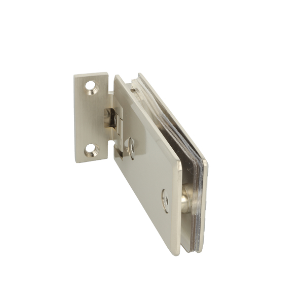 Shower Hinge "Linz", Wall/Glass,SS-Look, Offset Back Pl, 2 Holes, 6-10mm Glass Thickness, W/15 DG Angle Adjustment Function & 15DG Return Function, Brass Material, Rectangular Shape w/Chamferede Edges