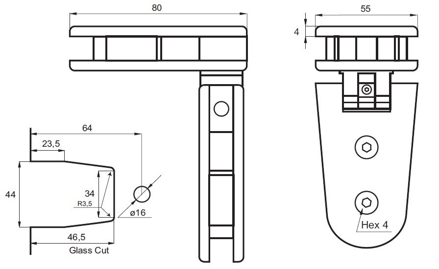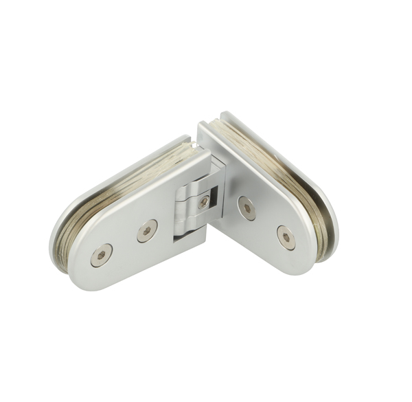 Shower Hinge "Zug" (New), 90DG, Alu-Look, Glass/Glass,6-10mm Glass Thickness, W/Angle Adjustment Function & 25DG Return Function, Brass Material, Oval Shape W/Straight Edges
