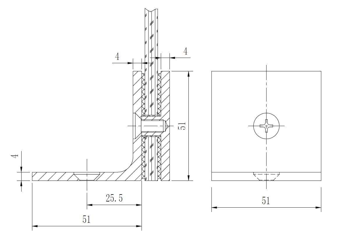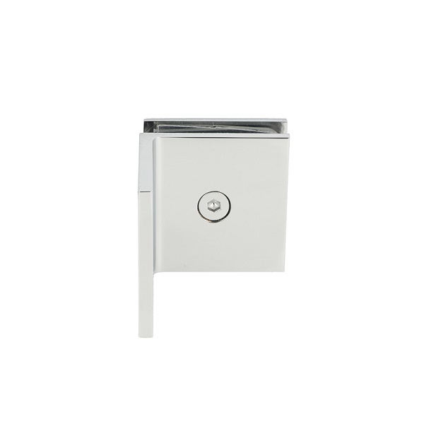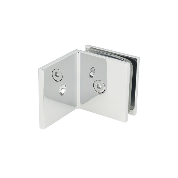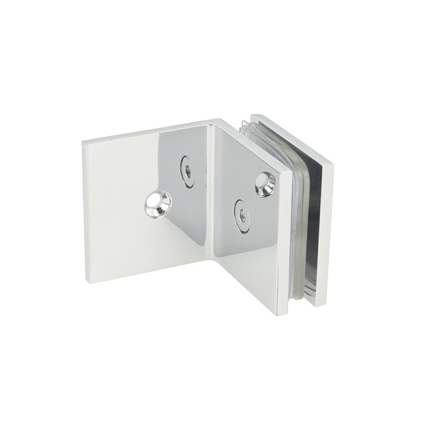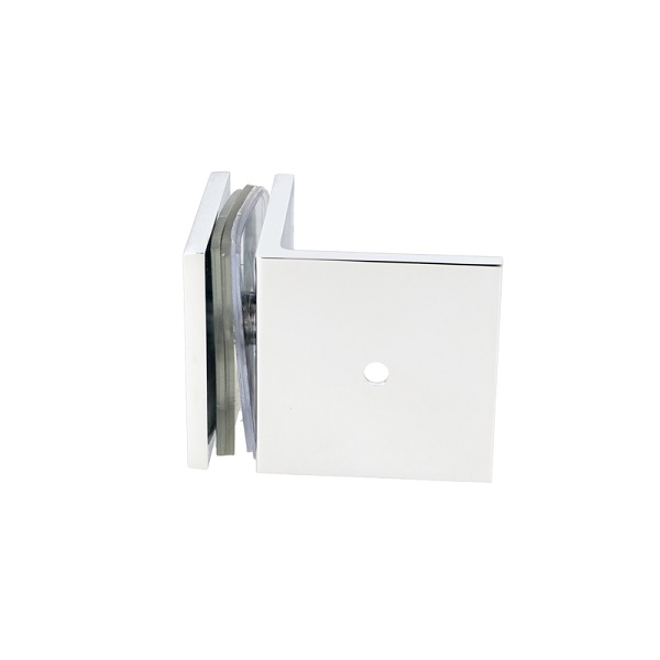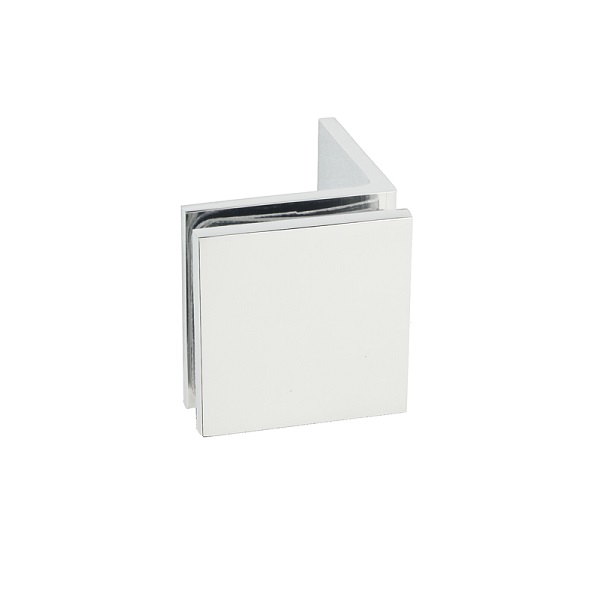 Glass Clamp "Bern", 90DG, CPL, Glass/Wall, 51x51x17mm, Square Corners, 8-10mm Glass, Wall Mounted By ø5mm Screw Hole, GLass Mounted By ø12mm Drilling, Brass Material