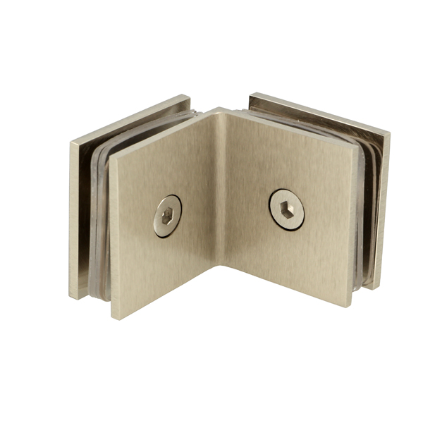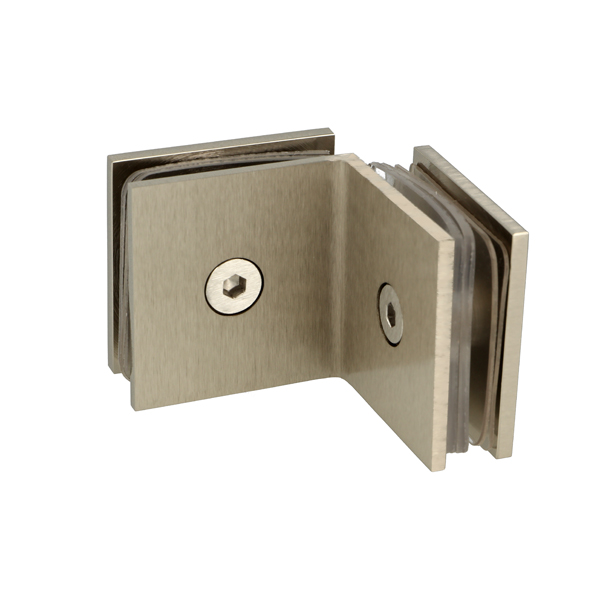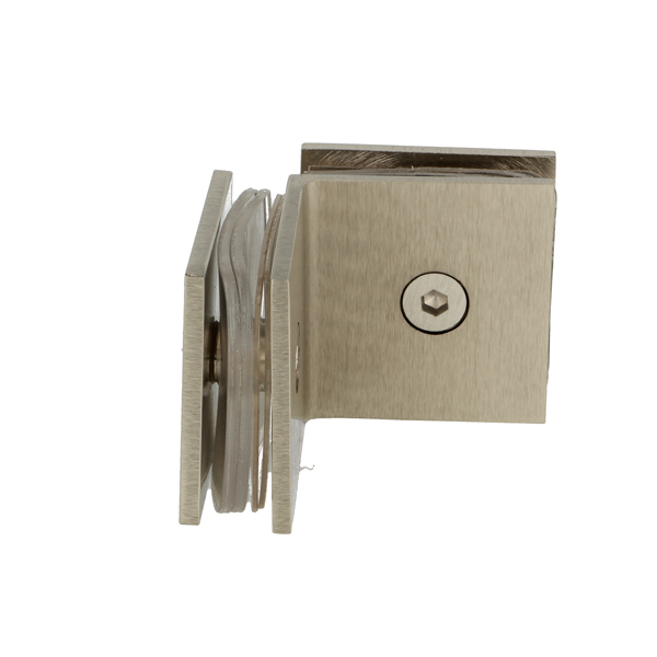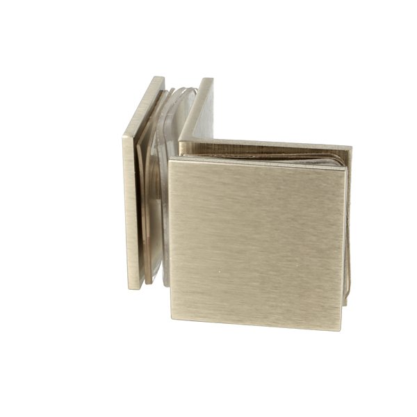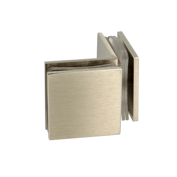 Glass Clamp "Berni", 90DG, SS-Look,Glass/Glass,44x44x16,5mm Square Corners, 8-10mm Glass, Glass Mounted By ø14mm Drilling, Brass Material