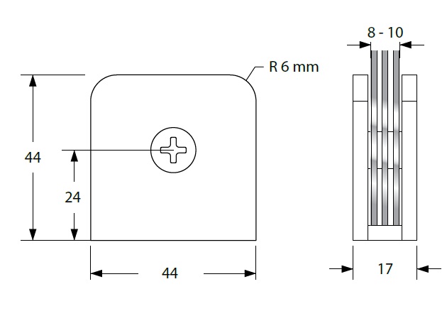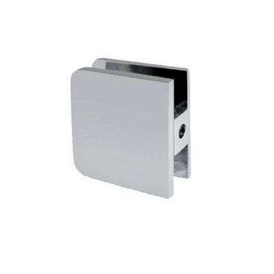 Glass Clamp "Ham", 180DG, CPL, Wall/Glass, 44x44x17mm,8-10mm Glass, Wall Mounted By 1 x ø5mm Screw Hole, Glass Mounted By ø12mm Drilling, Brass Material, Rounded Corners