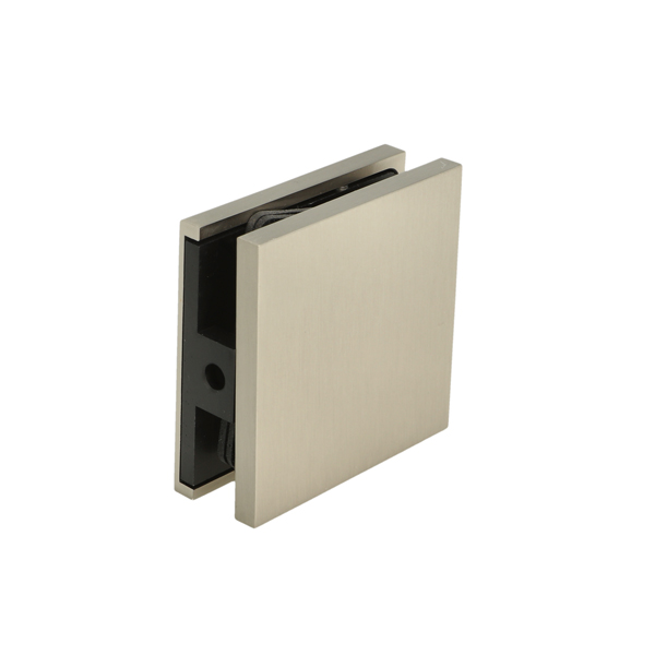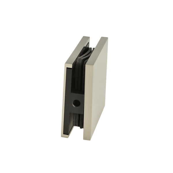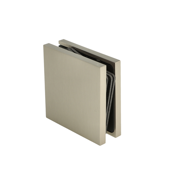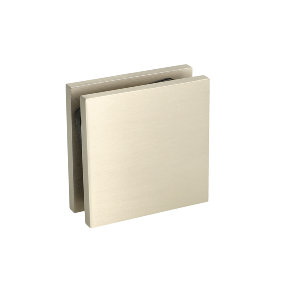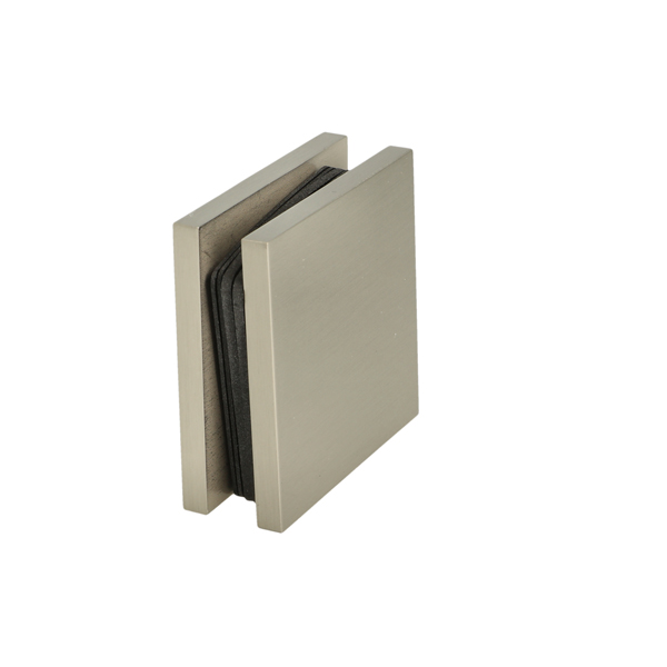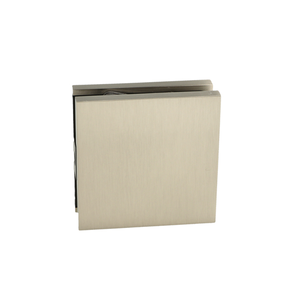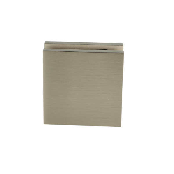 Glass Clamp "Lima", 180DG, SS-Look, Wall/Glass,60x60x20,5mm, F/6-10mm Glass, Wall Mounted By 1 x ø5mm Screw Hole, Glass Mounted By ø14mm Drilling, Hidden Screws, Brass, Alu & SS-304 Material