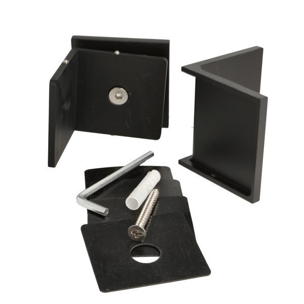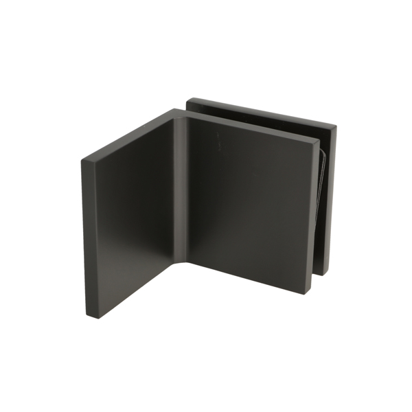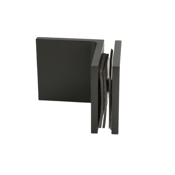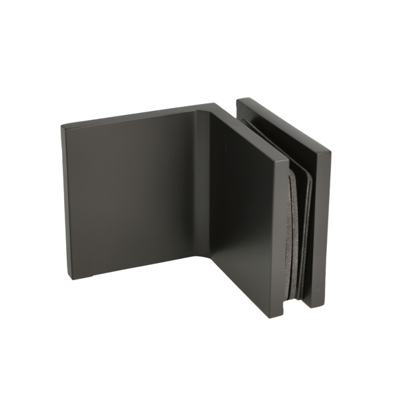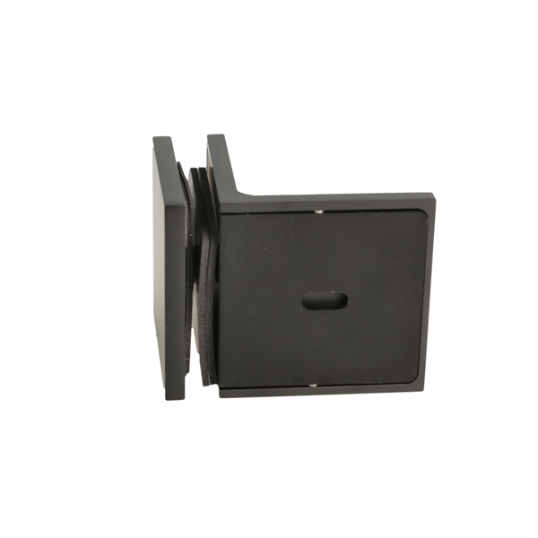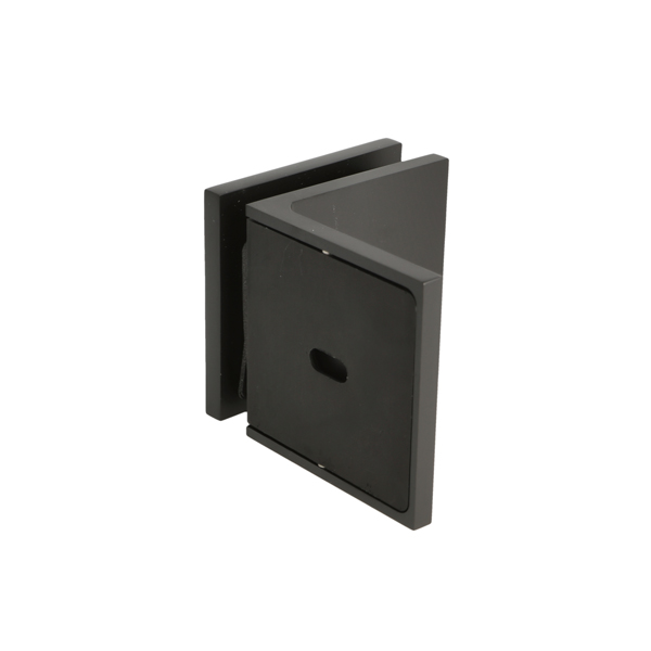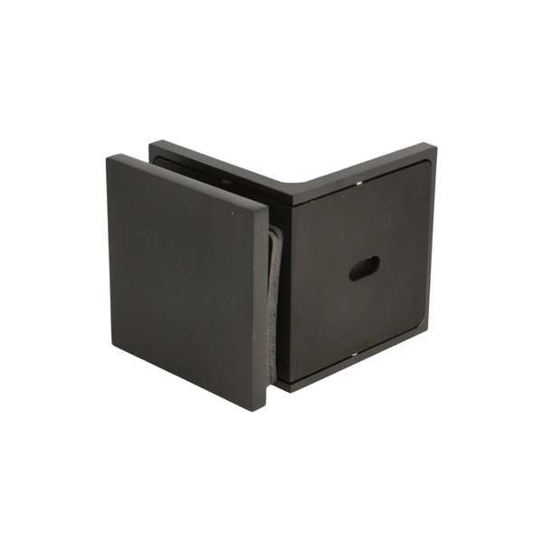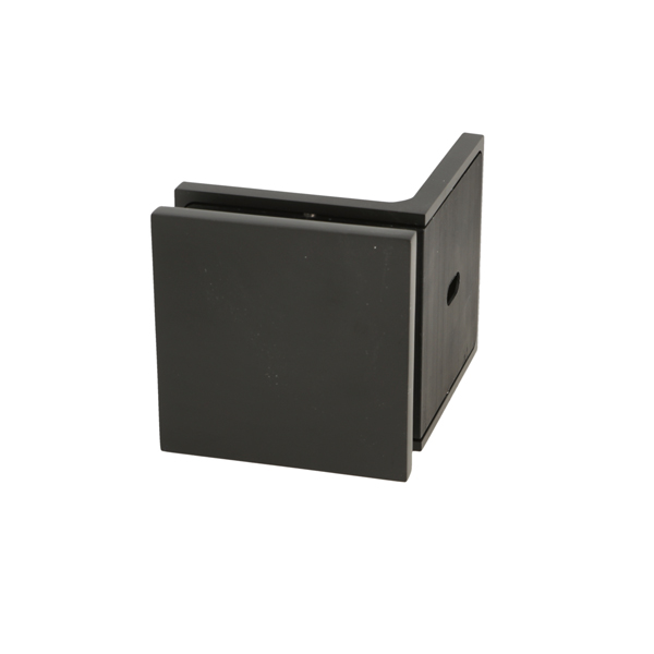 Glass Clamp "Lima", 90DG, Black, Glass/Wall, 60x60x20,5mm, 6-10mm Glass, Wall Mounted By ø5mm Screw Hole, Glass Mounted By ø14mm Drilling, Hidden Screws, Brass, Alu & SS-304 Material