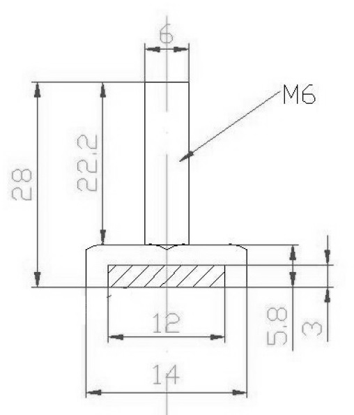 Magnet Screw F/Sauna, M6x28mm, W/14mm Hex Head, NPL
