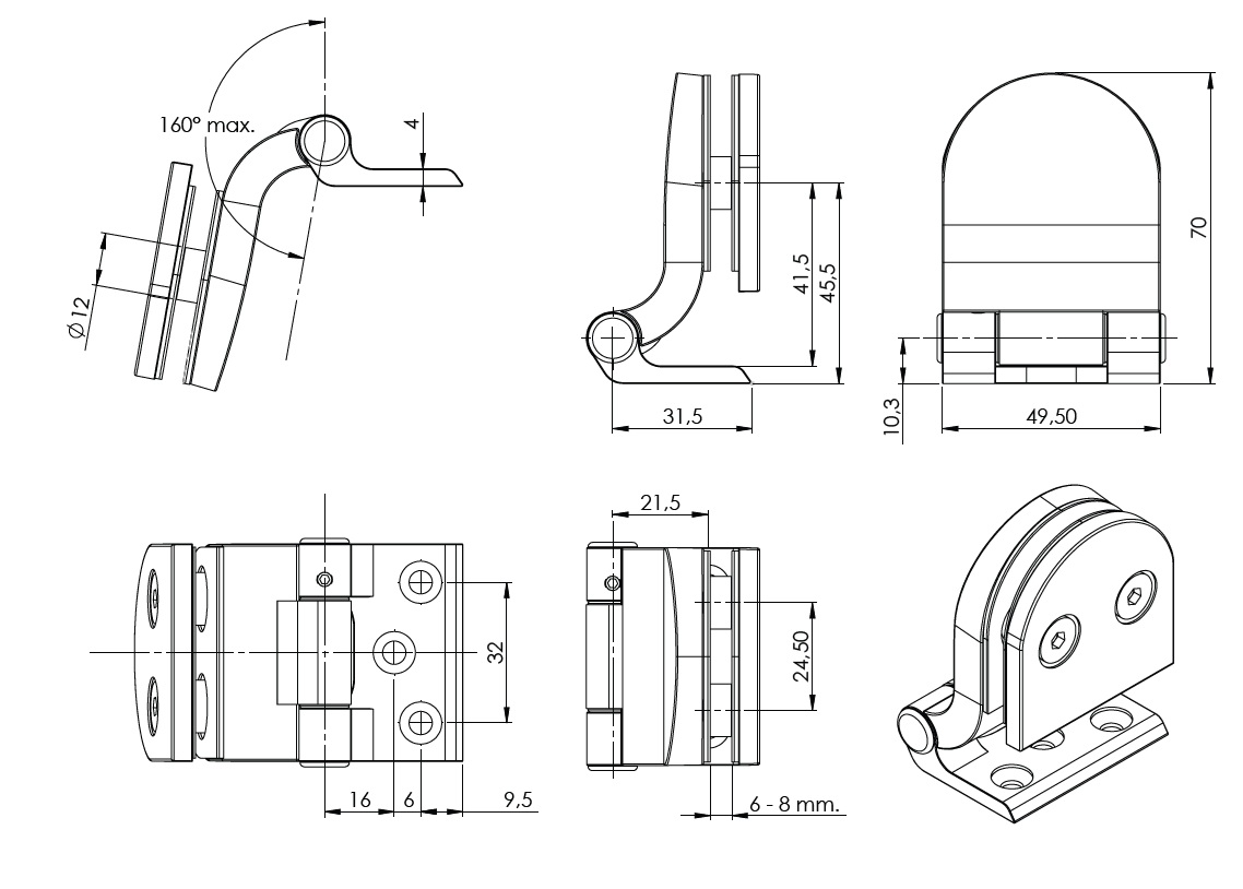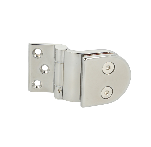 Sauna Hinge F/Glass Doors, "Suomi", Chrome Pl, Bracket Mounting, Cranked, Zamak Material
