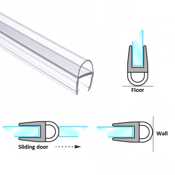 PVC Seal Glass To Floor, S-5708, 2,5 Mtr, F/8mm Glass ,With 9mm Lip