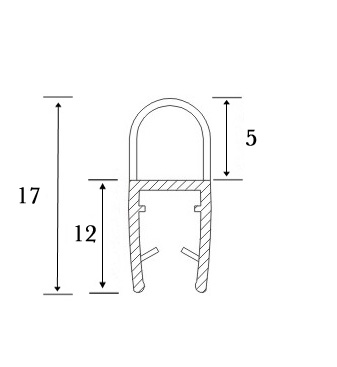 PVC Seal Glass To Floor, S-5715, 2,5 Mtr, F/8mm Glass ,With 5mm Lip