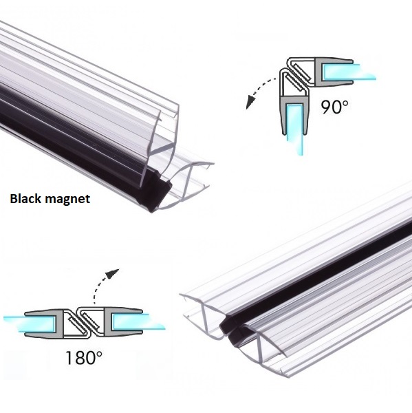 PVC Seal Glass To Glass, Black Magnet, 90/180DG, S-5711, F/6 mm Glass, 2,5 Mtr.