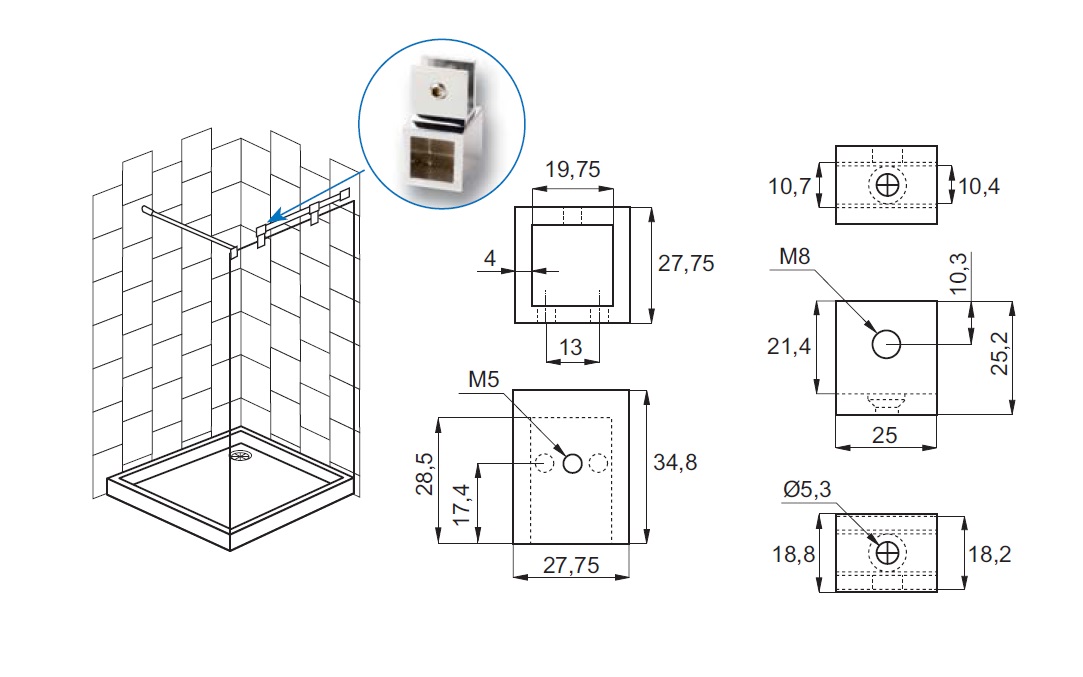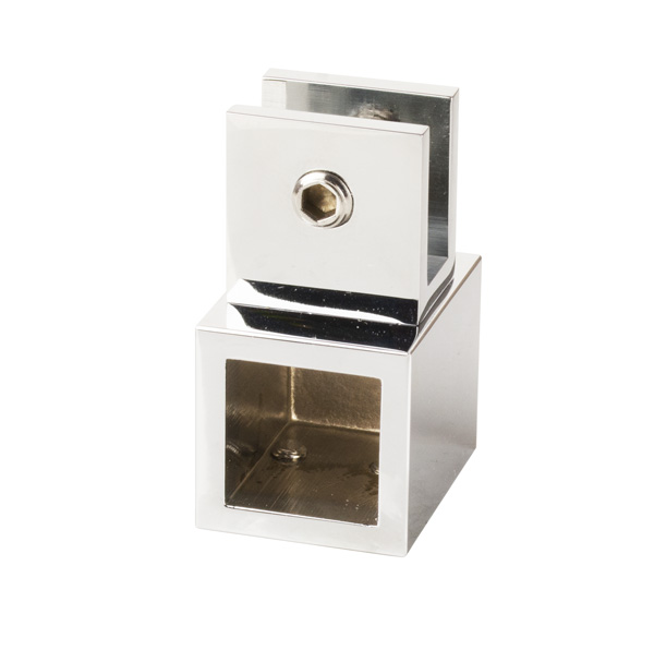 Bar To Glass Bracket, F/19x19mm Square Tube, SS-Look, 8-10mm W/Closed Bar Hole