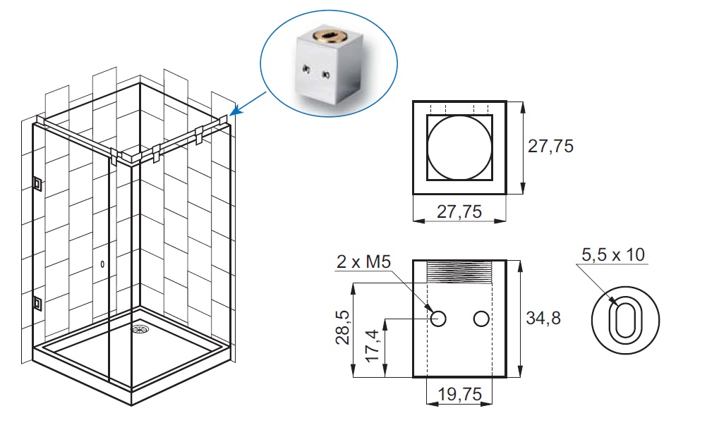Bar To Wall Bracket, F/19x19mm Square Tube, Black Finish
