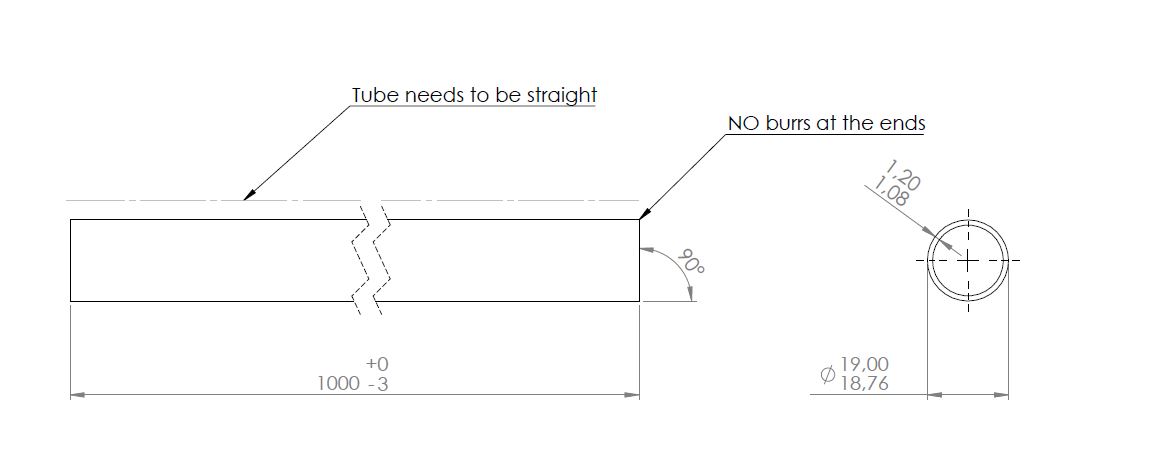 Brass Tube ø19x1000mm, 1,2mm Thickness, Chrome Plated