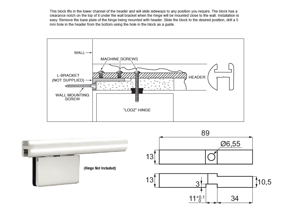 Pivot Hinge Adapter Block, CP, F/"Sputnik" Shower System