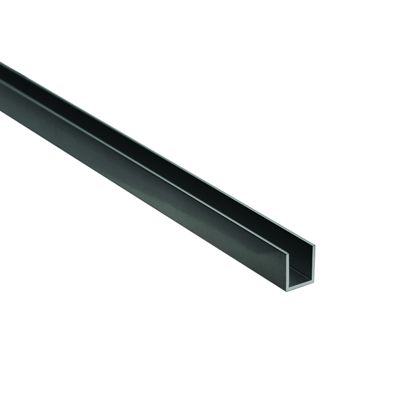 Alu. U-Channel, F/6mm Glass, Black Anod., 2,5Mtr,1x12x8,2mm (T/H/W)
