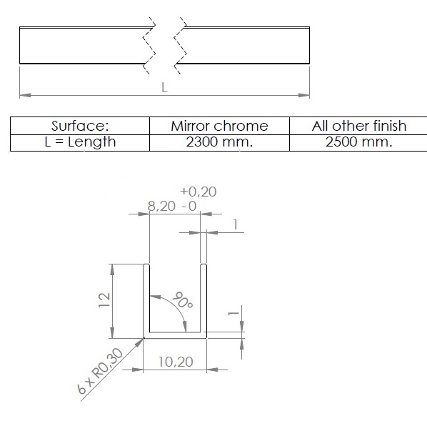 Alu. U-Channel, F/8mm Glass,Black Anod.,2,5 Mtr, 1x12x10,2mm (T/H/W)