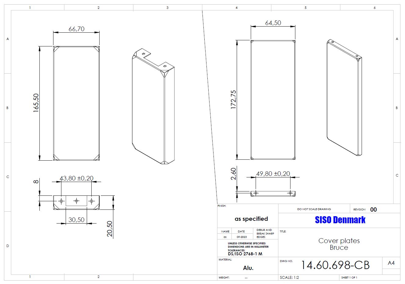 Cover Plates Brushed SS-304, F/"Bruce" Large Striker (44-50)