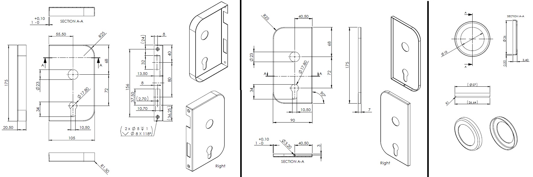 Cover Plates "Robin",W/Handle & Cylinder Hole, Right, SS-304 Brushed