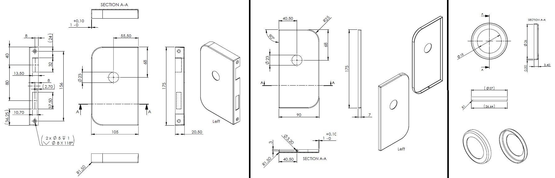 Cover Plates "Robin",W/Handle Hole, Left, Black Finish