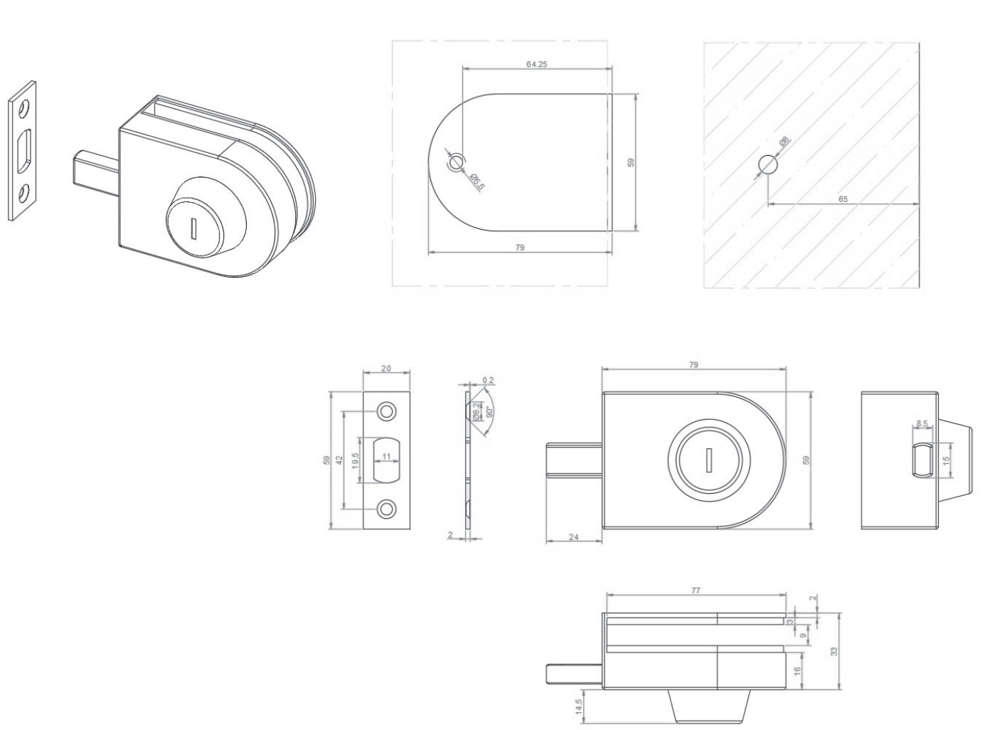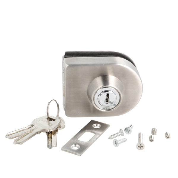 Glass Door Lock "Frigg II" F/8-12mm, no Cutting, KA, SS304, Brushed, W/Striker