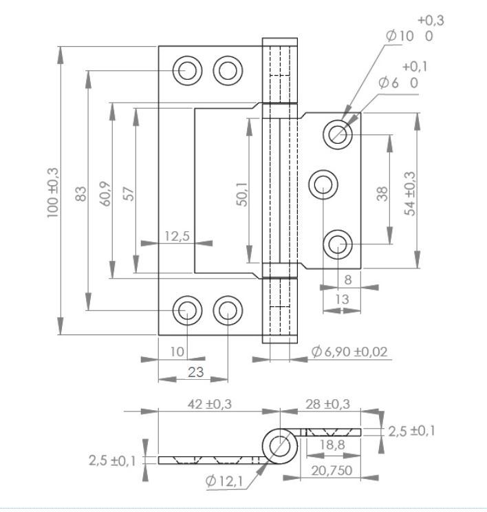 Butt Hinge "Flush", SS304, 100x70x2,5mm, W/Ball Bearing Washer, W/Stainless Steel Screws, SISO Logo