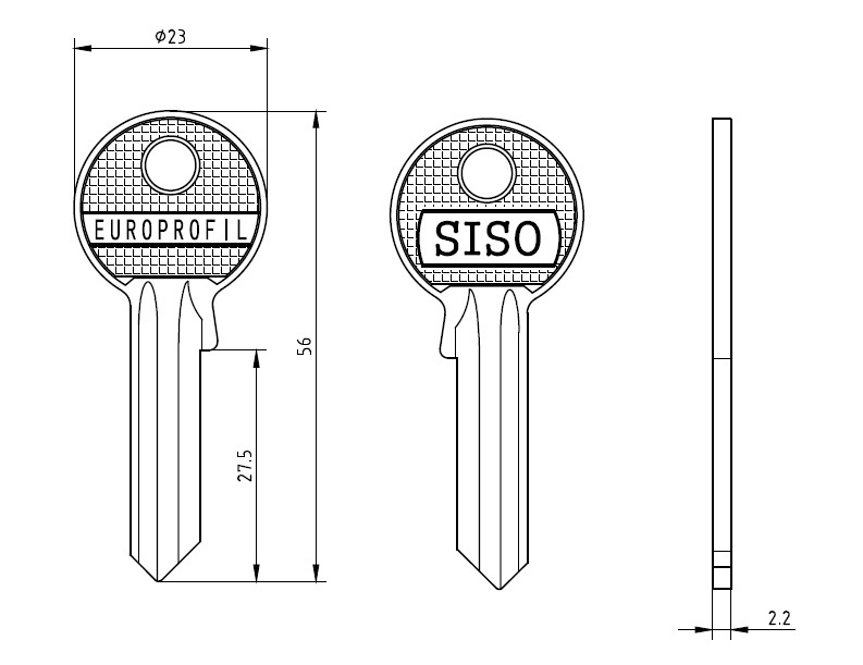 Blank Brass Key W/SISO Logo F/Profile Cylinder W/FAB Key Way