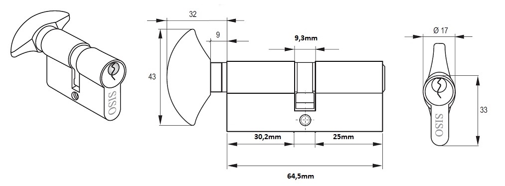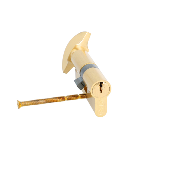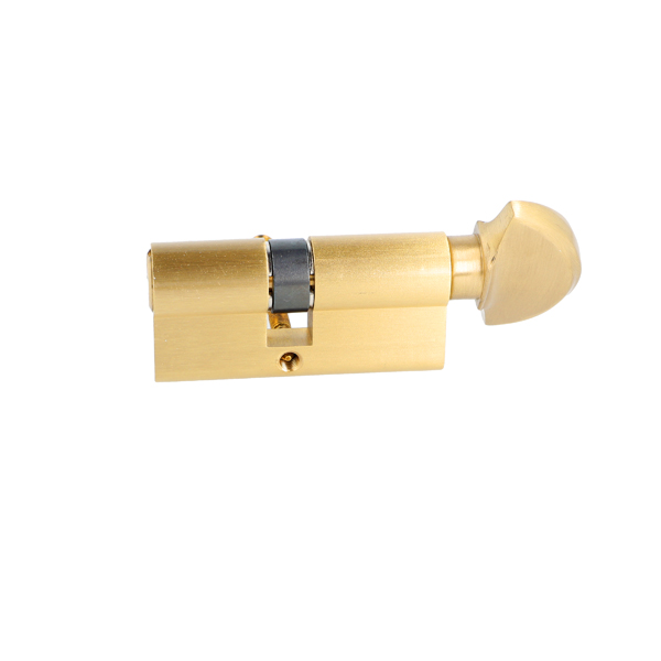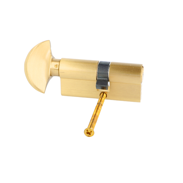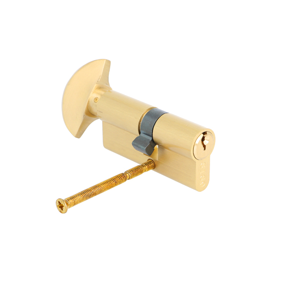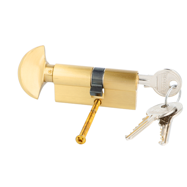 Profile Cylinder, Brass Satin, 64.5mm, W/Knob #2, FAB Key Way, 30,2+9,3+25mm. W/3 SISO Metal Keys, W/Screw, Knob On the Long Side 30,2mm