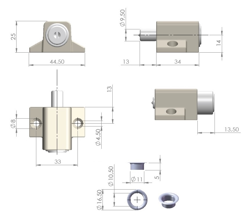 Window Push Lock 280, ø19, White, KA G02 (A01), CK SISO, W/ Sleeve