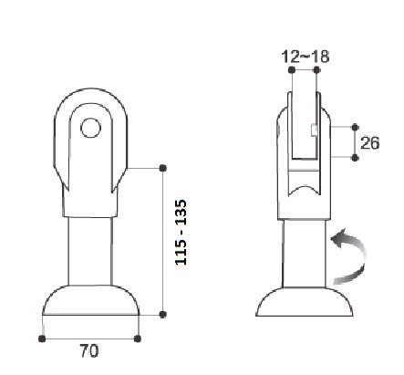 Toilet Cubicle Stand, 115-135mm, W/Cap, F/12-18mm, Black PP