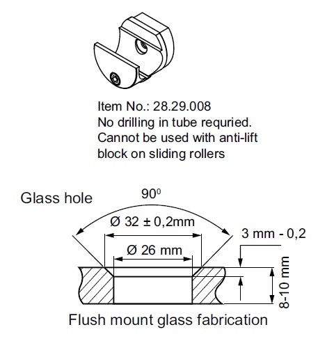 Wall Mounting Bracket Tube/Glass Lay-On, F/8-10mm Glass, CSK Screws, F/Tube ø25mm, SS304