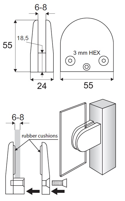 Glass Clamp, "Large", Zamak, Matt NPL, F/Thickness 4mm Only