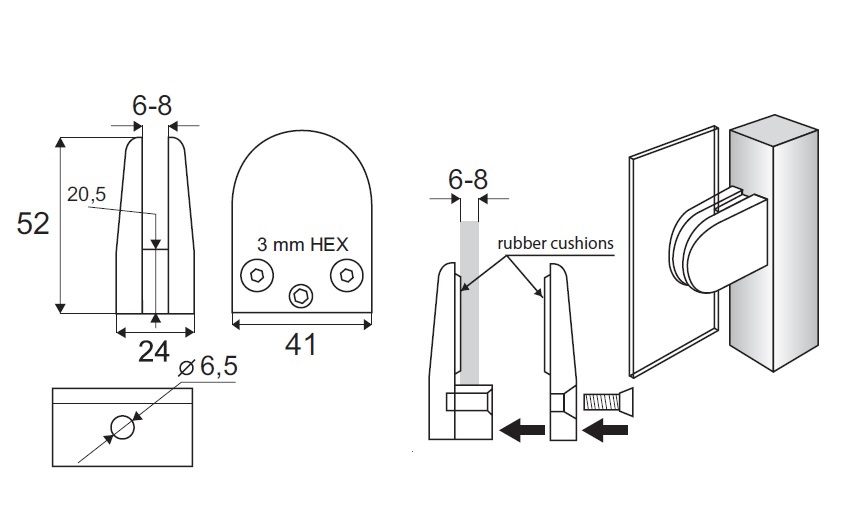 Glass Clamp, "Medium", Zamak, CPL, F/Thickness 6-8mm