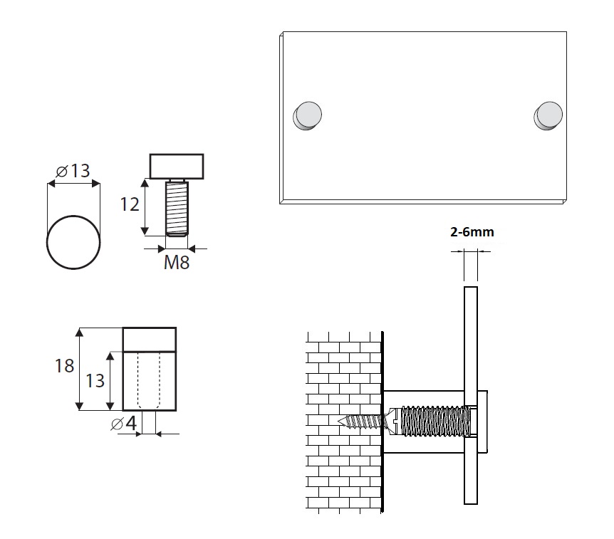 Sign Board Screw ø13x13mm, Alu, Blue, M8, W/2 Transparent Washers
