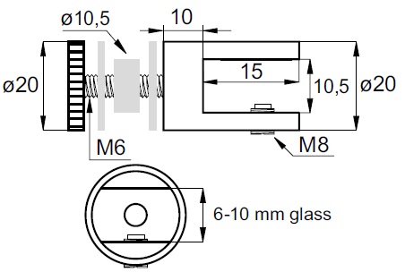 Shelf Sup. Cylindrical,CPL,ø20x26mm,F/Glass Wall Fixing,F/6- 10mm Glass Thickness
