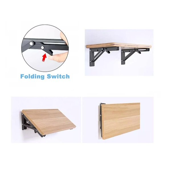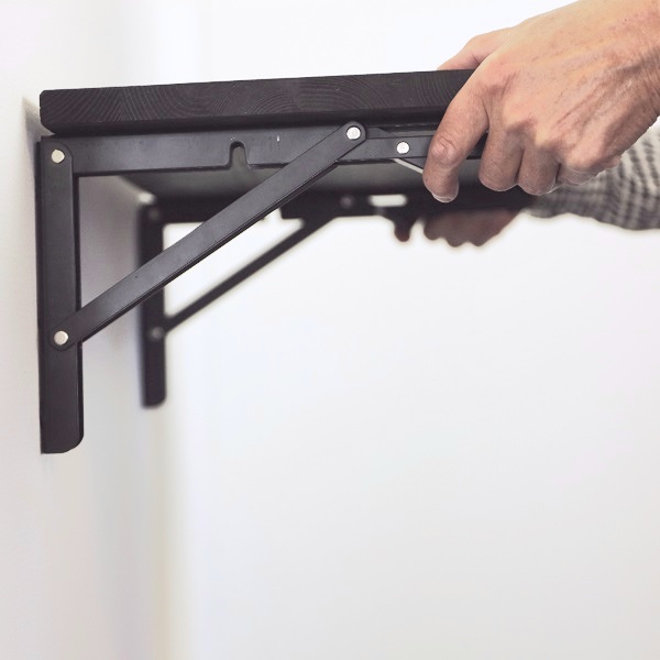 Folding Bracket, Steel, Black, 300mm, Self Locking,Max Load: 60 KG pr. Pair, RAL 9005