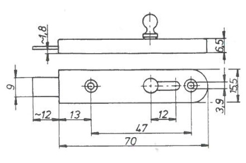 Sliding Bolt "Ball", Antique Copper,70mm,Straight,No Stopper