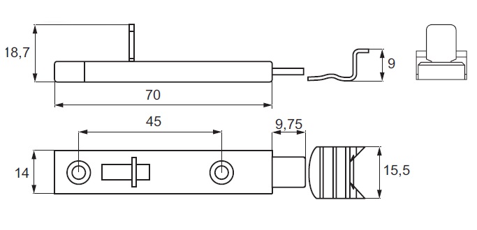 Sliding Bolt "Flat", NPL, 70mm, Straight, W/L-shaped Stopper