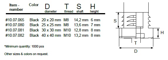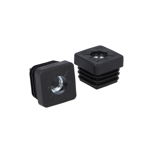 Insert Glide F/Square Tube,25x25mm,W/M8 Hex Nut,PE,Black